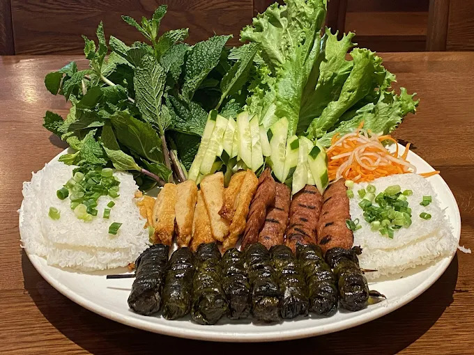 Phở Đặc biệt. "Đặc biệt" means special, meaning a luxurious combination of ingredients. This dish is packed with beef (rare steak, flank, fat brisket, tendon, tripe, beef balls). The broth shows great skill, with a rich beef flavor that isn't too greasy or salty, making it easy to drink all the way to the last drop! Cơm Tấm Sườn Nướng Tàu Hủ Ky. "Cơm" means rice, and "Cơm Tấm" refers to broken rice. In the past, rice would often break during transport, making it less desirable to sell, so farmers would either keep it for themselves or sell it cheaply to poor families. This dish includes a combination of pork chops and tofu skin with shrimp paste, making it a suitable meal for one person. The pork chop is marinated with a sweet flavor. Gỏi Cuốn. A refreshing spring roll with shrimp and sliced pork, served with a sweet and salty peanut sauce and fish sauce. Rau Má. An herbal drink with many Chinese names, such as 雷公草, 崩大碗. It’s very refreshing on its own but is often mixed with durian, mung beans, or coconut milk to create a drink. The Rau Má Dậu Xanh with mung beans is quite refreshing, and if I made it myself, I would reduce the sweetness.